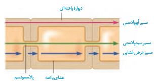 حرکت مواد از پروتوپلاست یک سلول به سلول مجاور از راه پلاسمودسمها براساس پتانسیل آبی و به روش اسمز