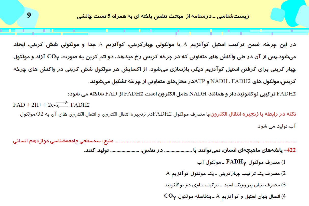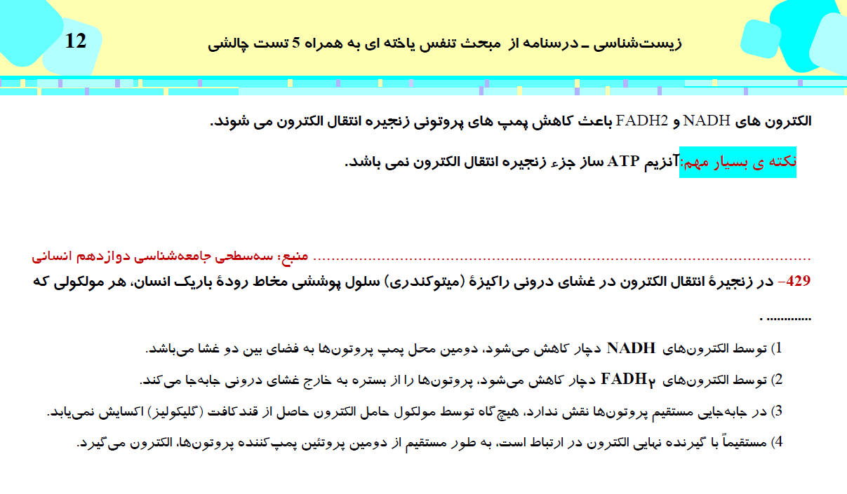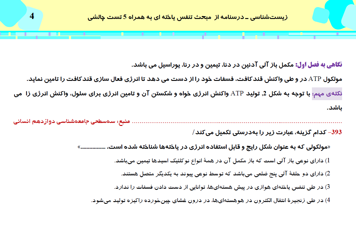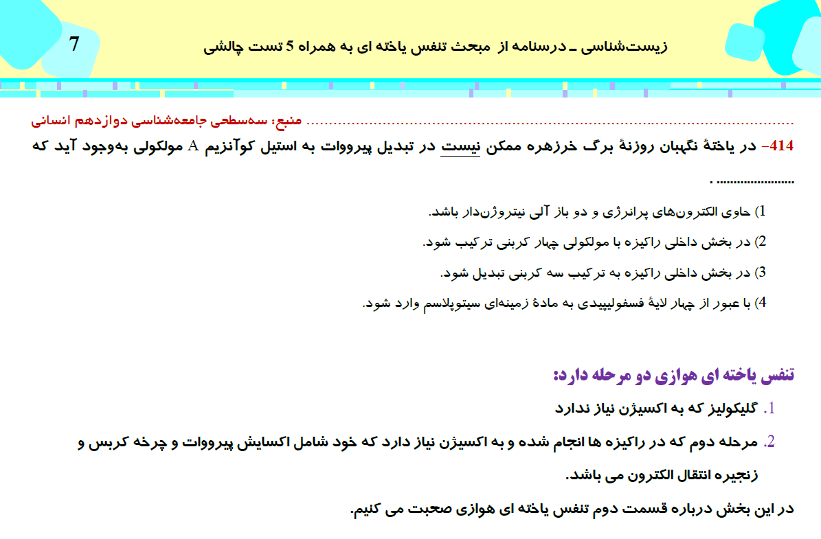 این مطلب شامل درسنامه با 5 تست چالشی از کتاب سه سطحی زیست شناشی (3)، مبحث تنفس یاخته ای، مطابق با برنامه راهبردی آزمون 31 اردیبهشت می باشد.