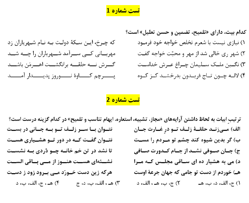 در این مطلب سعی داریم به همراه هم تست های آرایه تلمیح در کنکور 98 را بررسی کنیم.