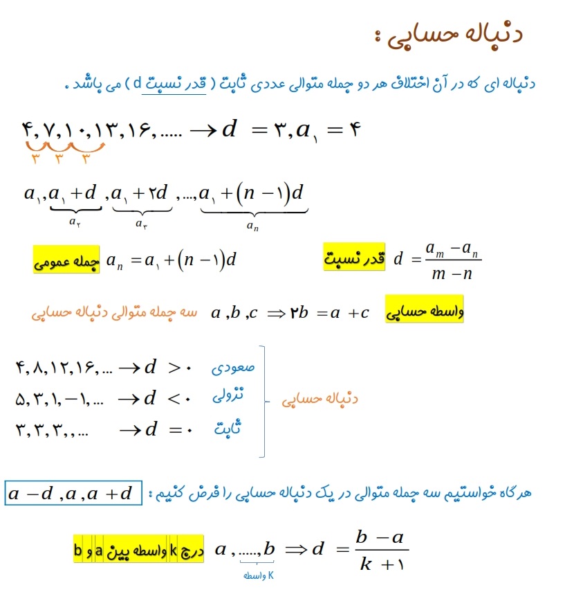 فایل ضمیمه شامل درسنامه مروری به همراه حل تست، جهت جمع بندی مبحث دنباله حسابی است. * گروه پشتیبانان ویژه کانون *