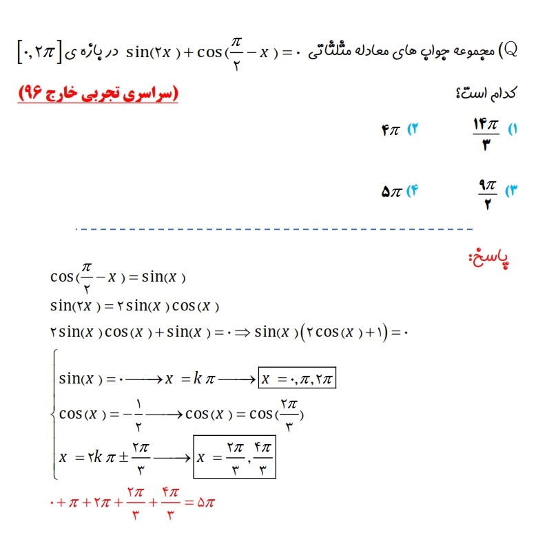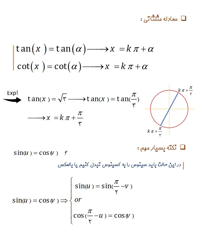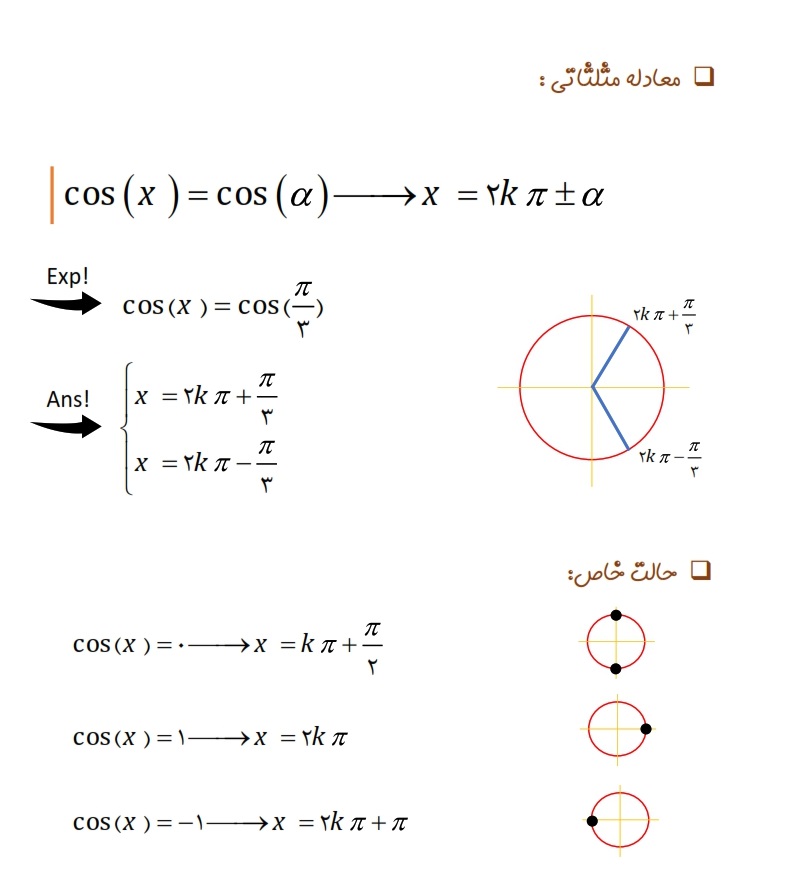 فایل ضمیمه شامل درسنامه مروری به همراه حل تست، جهت جمع بندی معادله مثلثاتی است. * گروه پشتیبانان ویژه کانون *