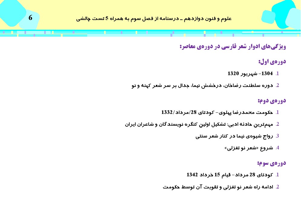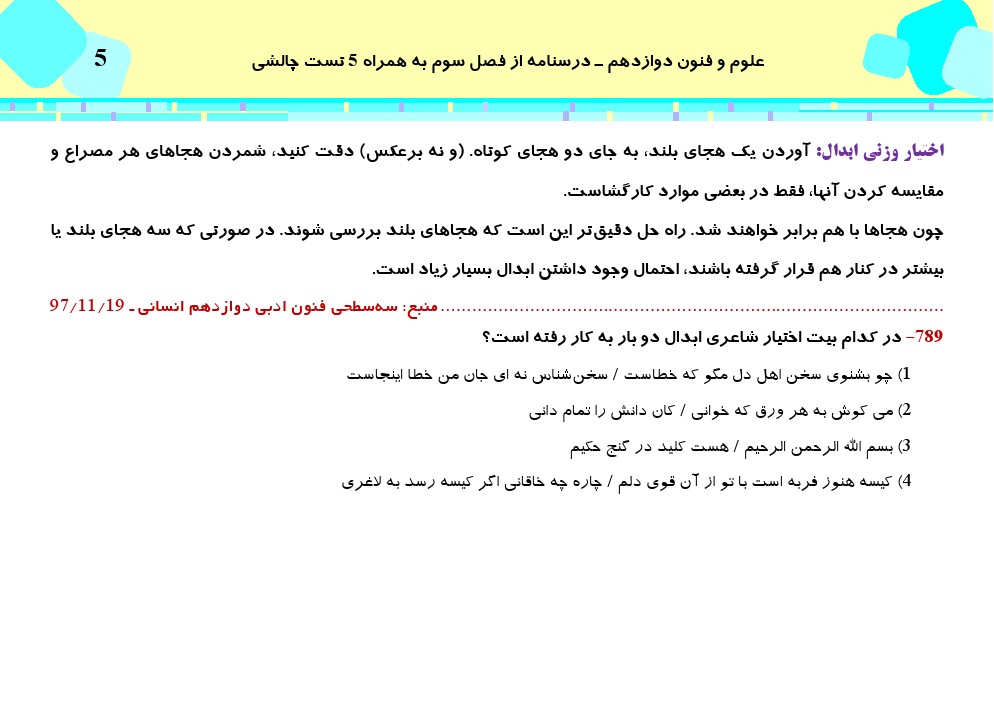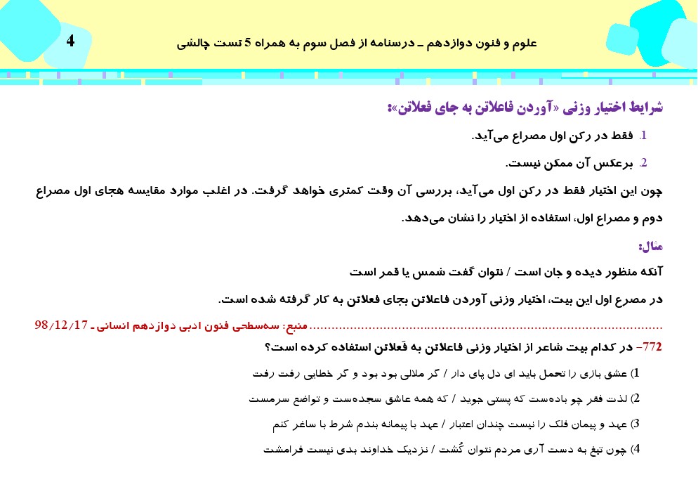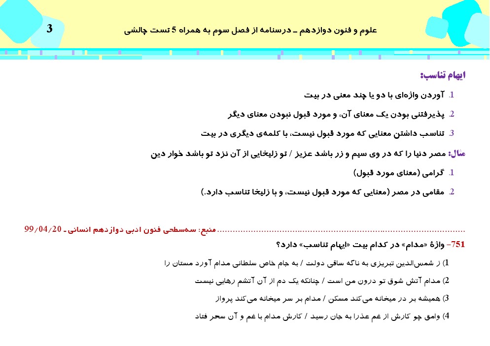 این مطلب شامل درسنامه با 5 تست چالشی از کتاب سه سطحی علوم و فنون (3)، مبحث فصل سوم، مطابق با برنامه راهبردی آزمون 31 اردیبهشت میباشد.
