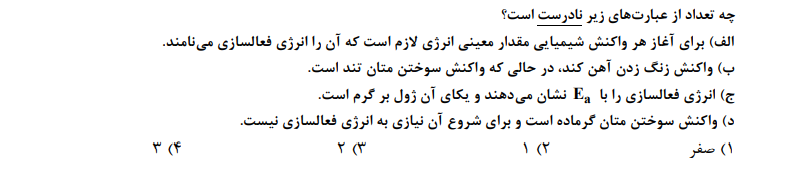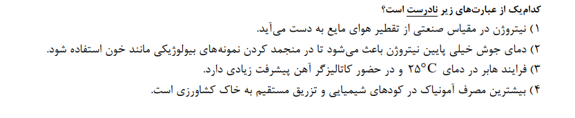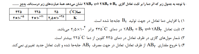 کامنت کاربر مقدار ثابت تعادل واکنش تهیه آمونیاک در سه دمای 25 و 200و 400درجه سلسیوس به صورت زیر است.1 )خیلی زیاد 2)متوسط3)کمکدوم میشه چنتا کتاب جوابای گوناگون دادن به نظرم سرعت واکنش رو با ثابت تعادل اشتباه گرفته بودند . چند میشه دوستان ؟