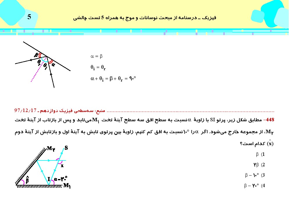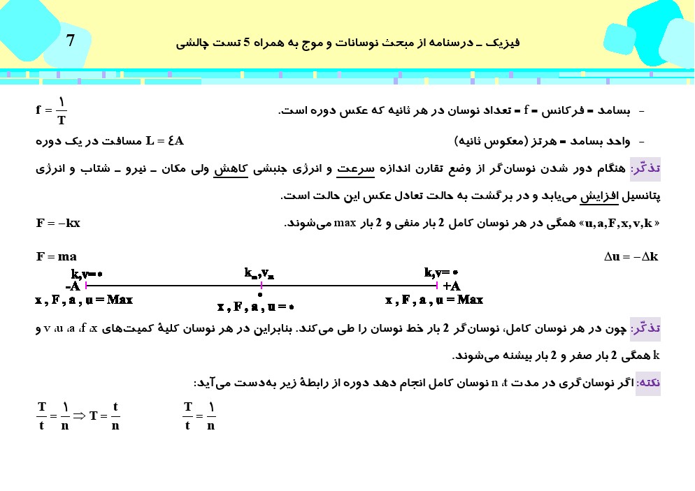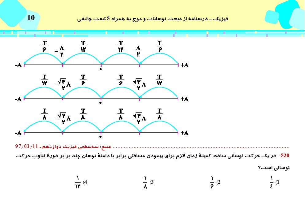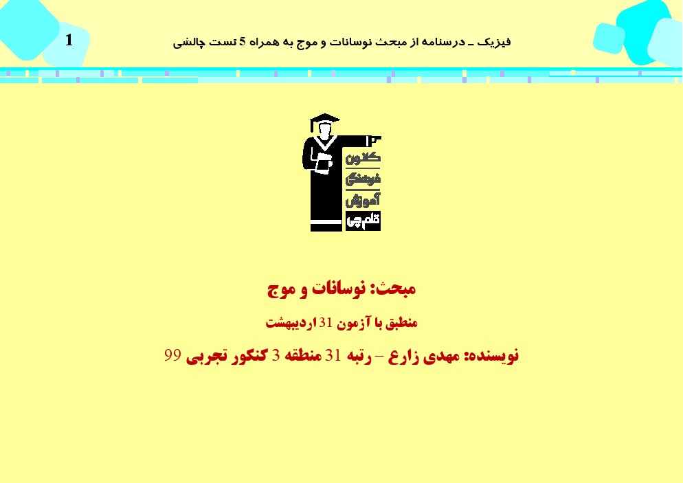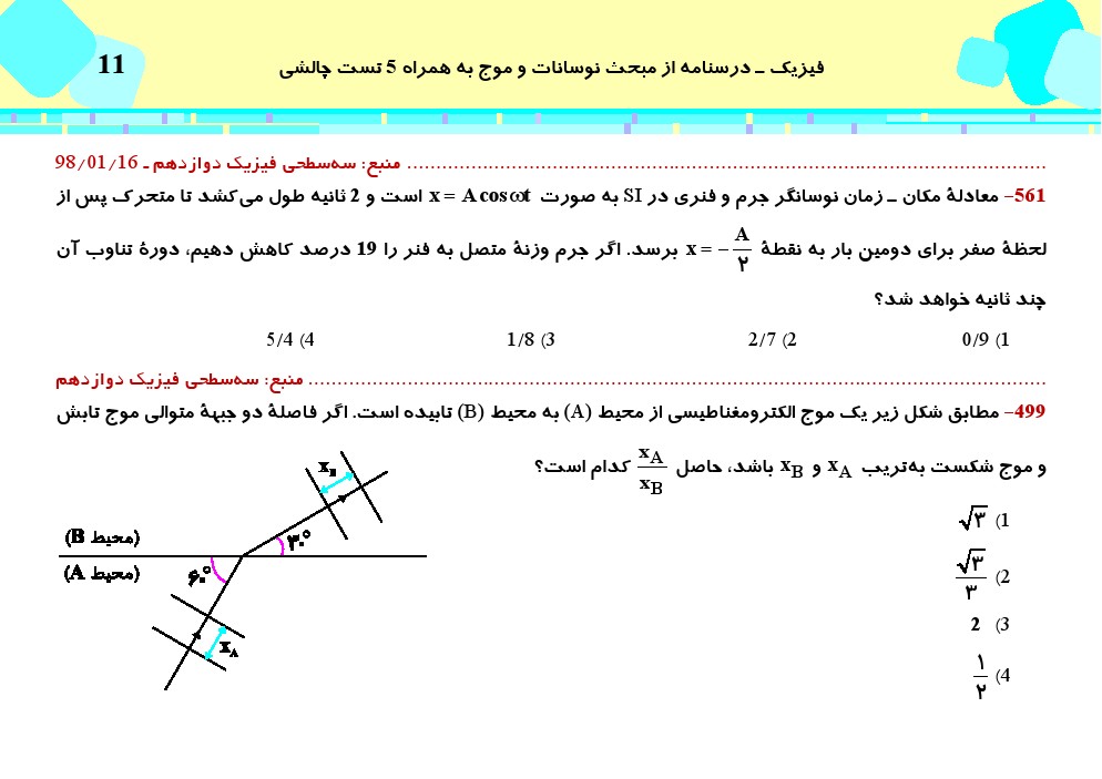 این مطلب شامل درسنامه با 5 تست چالشی از کتاب سه سطحی فیزیک (3)، مبحث نوسانات و موج، مطابق با برنامه راهبردی آزمون 31 اردیبهشت میباشد.