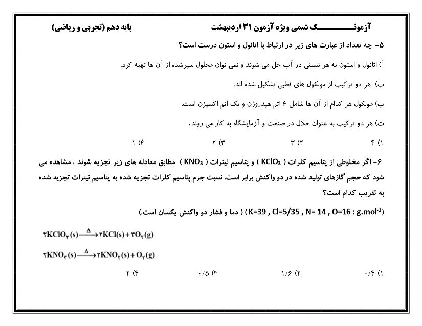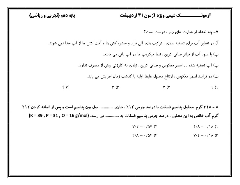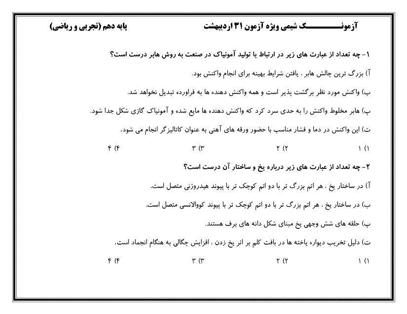 دانش آموزان عزیز دهمی سلام پس از خواندن درسنامهها و سایر مطالب مرتبط با آزمون 31 اردیبهشت، اکنون وقت آن رسیده است که خود را بیازمایید.برای دیدن پاسخ این سؤالات فایل pdf زیر را دانلود کنید.