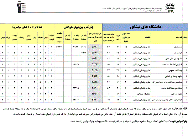 یادگار ماندگار : قبولی های کانونی دانشگاه علوم پزشکی نیشابور و دانشگاه نیشابور در همه رشته ها در سال 99 را در ادامه مشاهده کنید.فایل با کیفیت قبولی های سال 99 را در قسمت فایل های ضمیمه دانلود کنید.