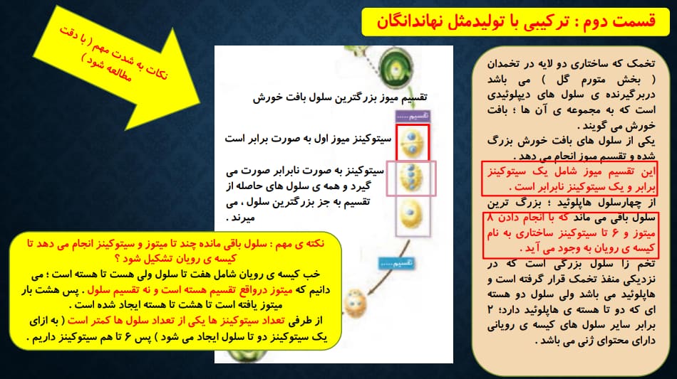 در سه جزوه ی قرار گرفته در فایل های ضمیمه ؛ درسنامه های مفهومی و دقیق از فرآیند میتوز و میوز ؛ جمع بندی کل میوز های مهم بیان شده در سه پایه و در آخر تست های کنکور و تحلیل نکات تستی آن ها ؛ بررسی شده است .