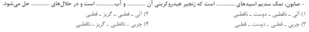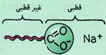1- بخش زنجیر هیدروکربنی که اب گریز است و در نتیجه چربی دوست است و سر ناقطبی صابون را تشکیل می دهد.