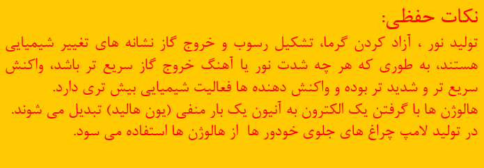 توجه: هرچه یک نافلز، تمایل بیش تری برای گرفتن الکترون داشته باشد، واکنش پذیری و خصلت نافلزی بیش تری دارد.