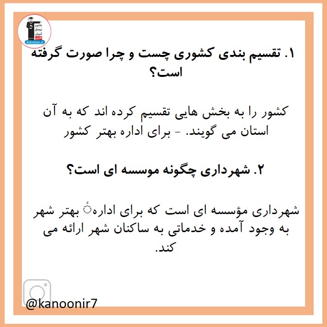 دانش آموزان عزیز سلامامیدواریم مثل همیشه حالتان خوب باشد و هر روز بیشتر از دیروز تلاش کرده و به موفقیت نزدیکتر شوید.در ادامه صفحات نمونه سوالات درس دهم مطالعات هفتم را برایتان گذاشته ایم.در اینستاگرام نیز با ما همراه باشید.