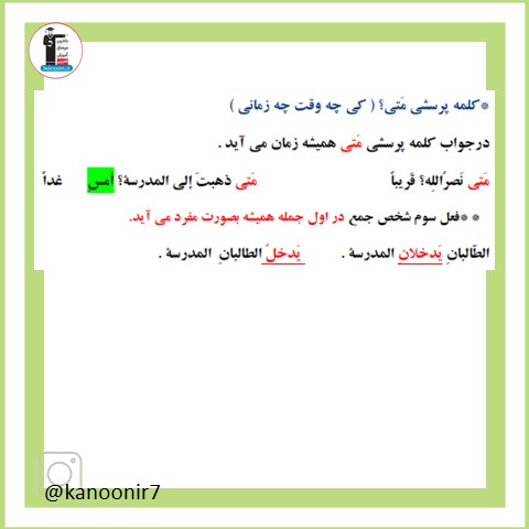 دانش آموزان عزیز سلامامیدواریم مثل همیشه حالتان خوب باشد و هر روز بیشتر از دیروز تلاش کرده و به موفقیت نزدیکتر شوید.در ادامه صفحات درسنامه های فصل هفتم عربی هفتم را برایتان گذاشته ایم.در اینستاگرام نیز با ما همراه باشید.