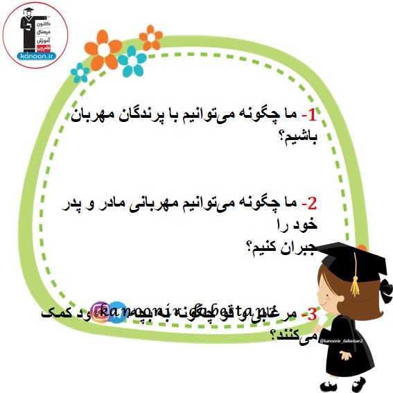 نمونه سوالات درس 4 - هدیه دوم دبستان - فرخنده دشتی