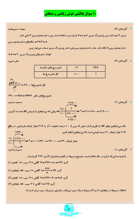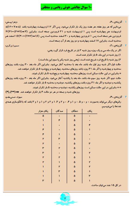 ششمی های عزیز سلام 10 سوال دشوار هوش ریاضی و منطقی که در آزمون 31 اردیبهشت درصد پاسخگویی کمتری در مقایسه با بقیه سوالات داشتند را می توانید مشاهده کنید.