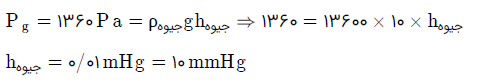 سطح جیوه درون لوله پایین تر از سطح جیوه درون ظرف قرار می گیرد.
