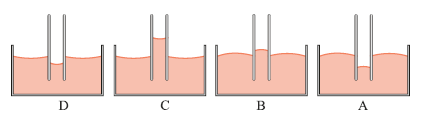 اگر یک لوله ی مویین را که دو طرف آن باز است به طور قائم در جیوه فرو ببریم، به صورت کدام یک از شکل های زیر در می آید؟