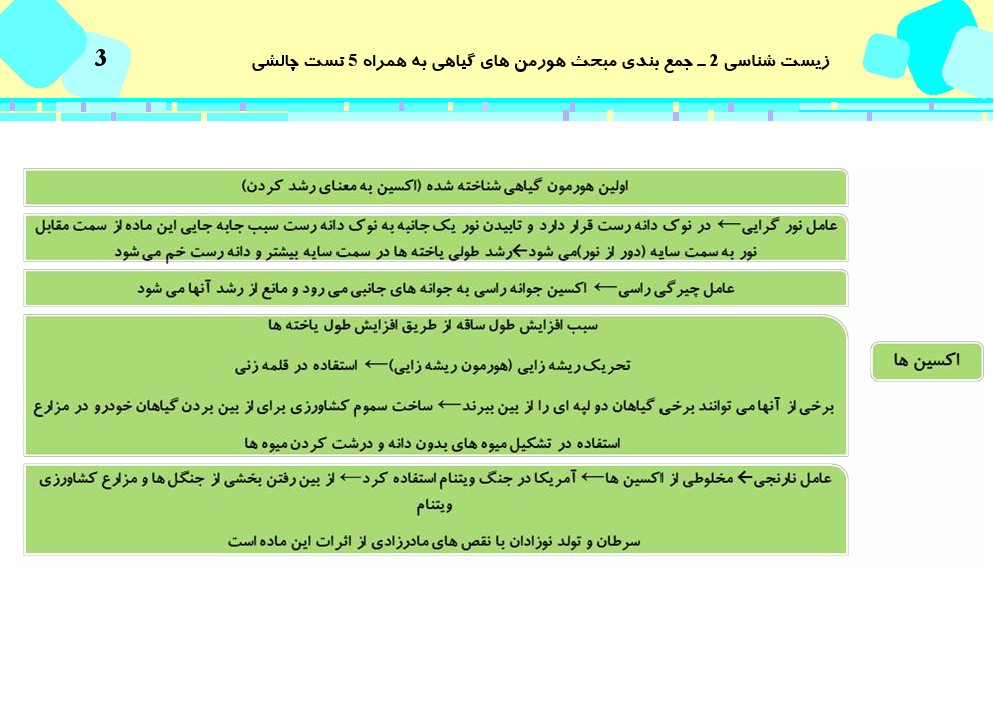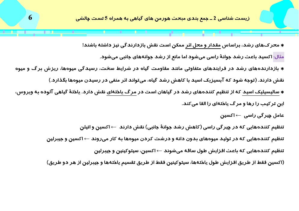 این مطلب شامل درسنامه با 5 تست چالشی از کتاب سه سطحی زیست شناسی پایه، مبحث هورمون های گیاهی میباشد.در فایل ضمیمه درسنامه به همراه پاسخ تشریحی سوالات قرار داده شده است.این مطلب توسط جواد زینلی نوش آبادی تهیه شده است.* گروه پشتیبانان ویژه کانون *