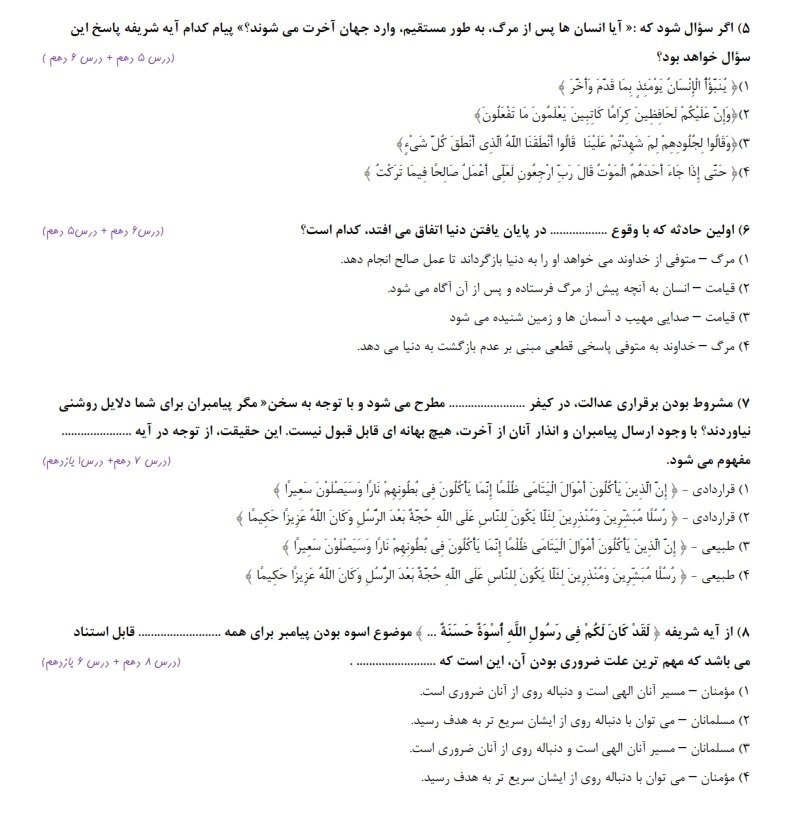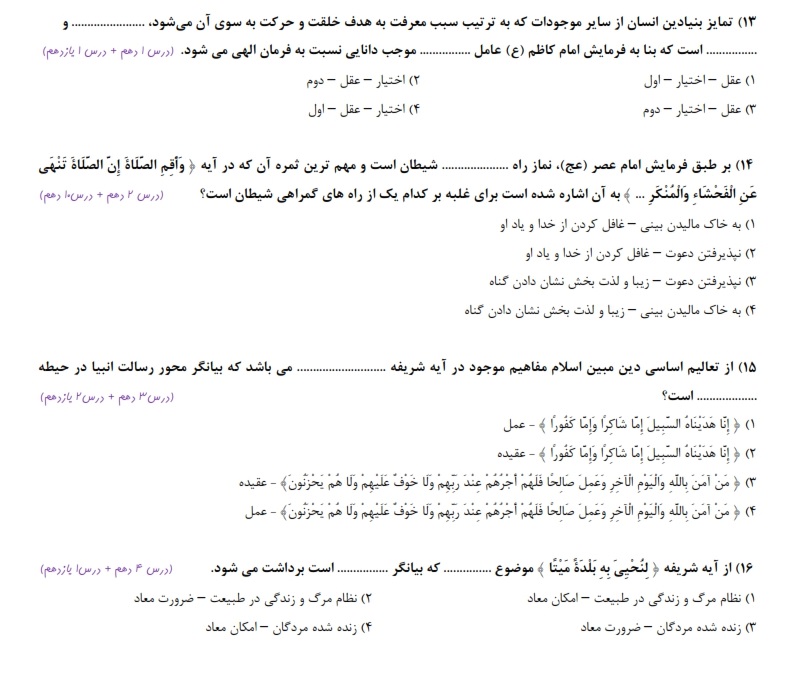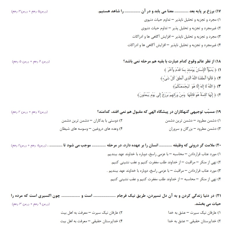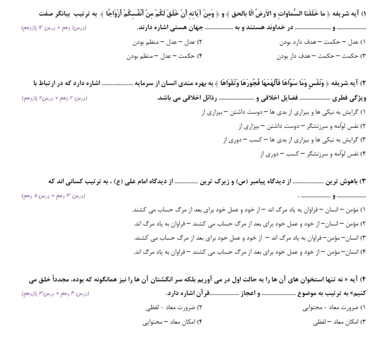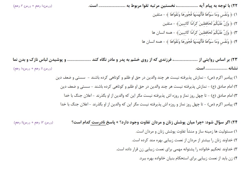 این مطلب شامل 24 تست ترکیبی مهم و پرتکرار جهت جمع بندی دین و زندگی سال دهم به همراه پاسخ تشریحی می باشد. *گروه پشتیبانان ویژه کانون*جهت مشاهده فایل PDF سوالات به همراه پاسخنامه، به بخش ضمیمه مراجعه نمایید.
