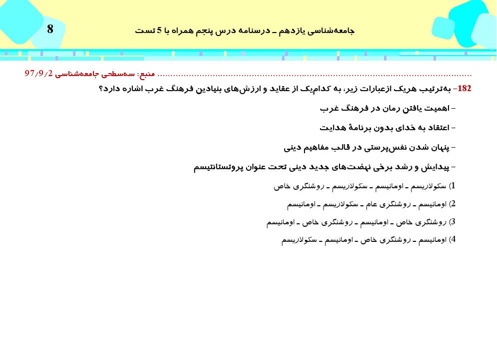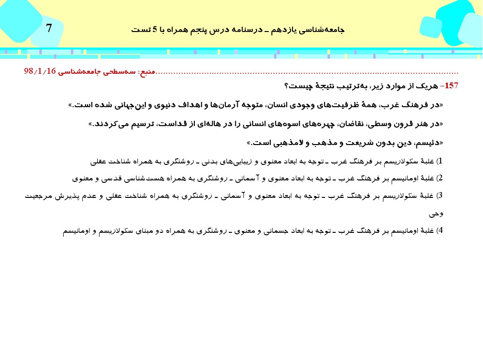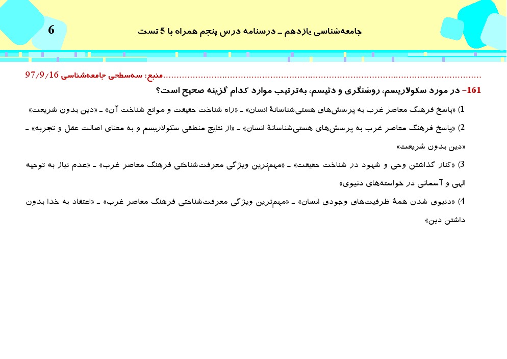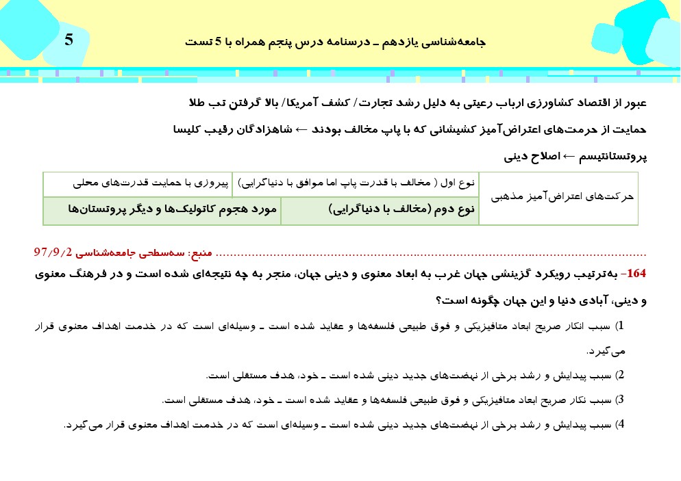 این مطلب شامل درسنامه با 5 تست چالشی از کتاب سه سطحی جامعه شناسی پایه، درس پنجم میباشد.در بخش ضمیمه فایل درسنامه قرار داده شده است.این مطلب توسط زینب صالح زاده تهیه شده است.* گروه پشتیبانان ویژه کانون *
