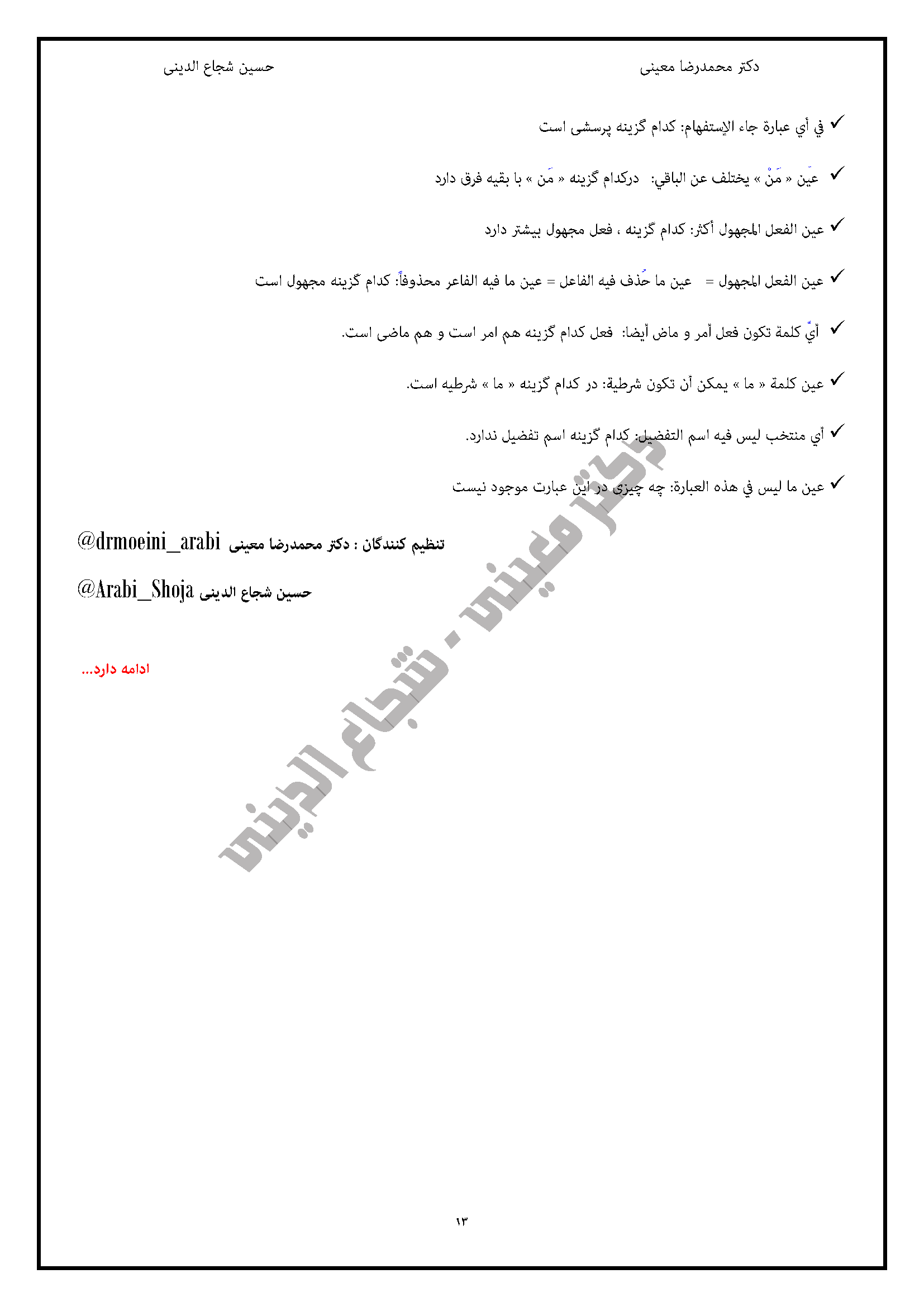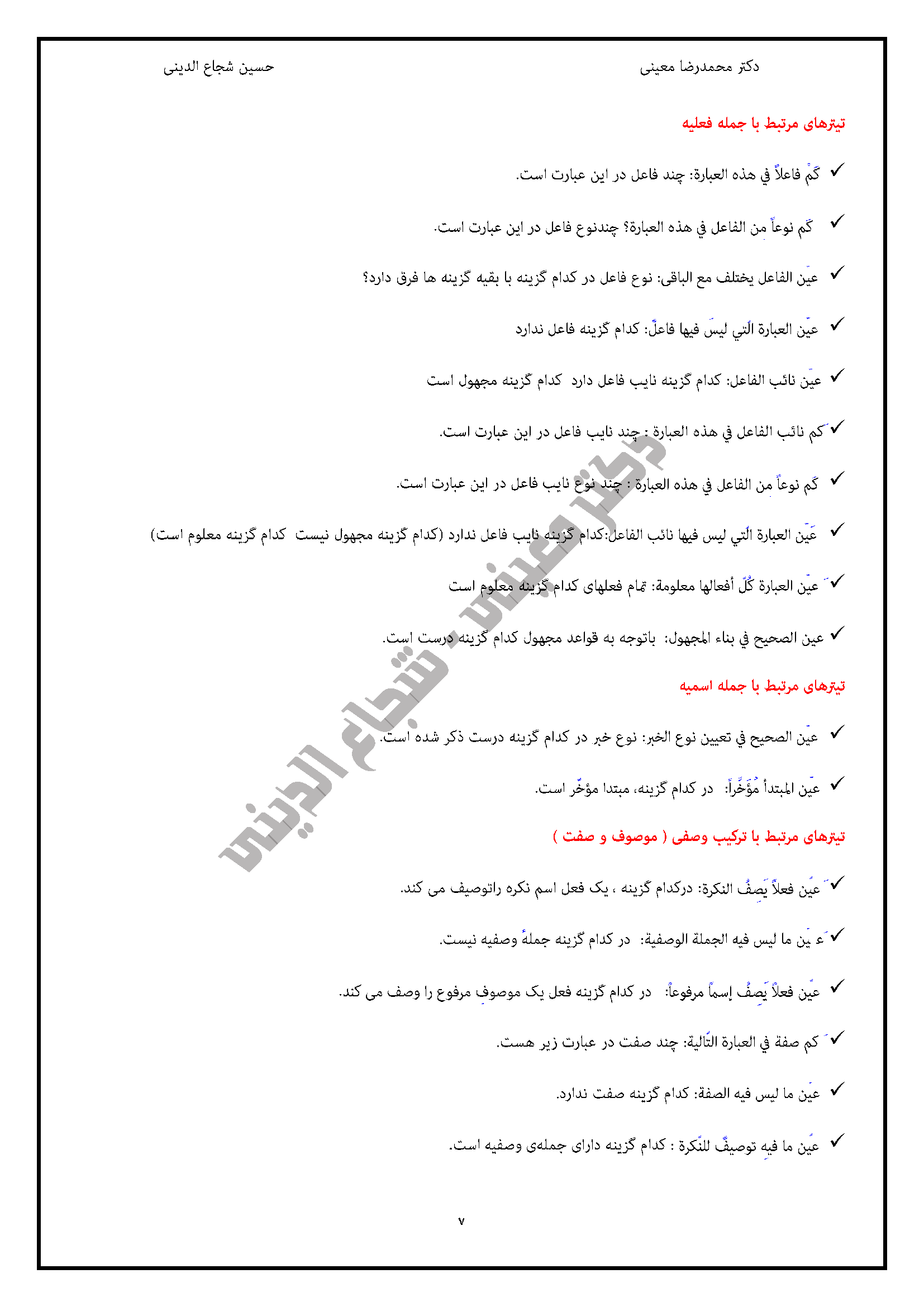 در این مطلب تیتر سؤالات عربی در مباحث و موضوعات مختلف، با بیان های متفاوت، به طور کامل جمع بندی شده است.