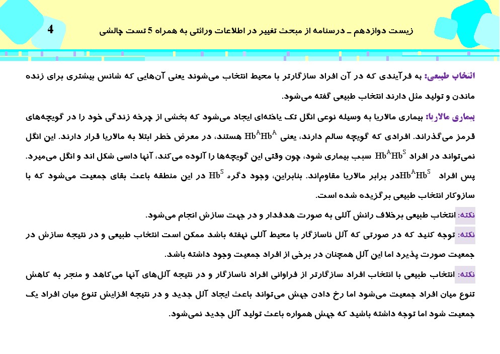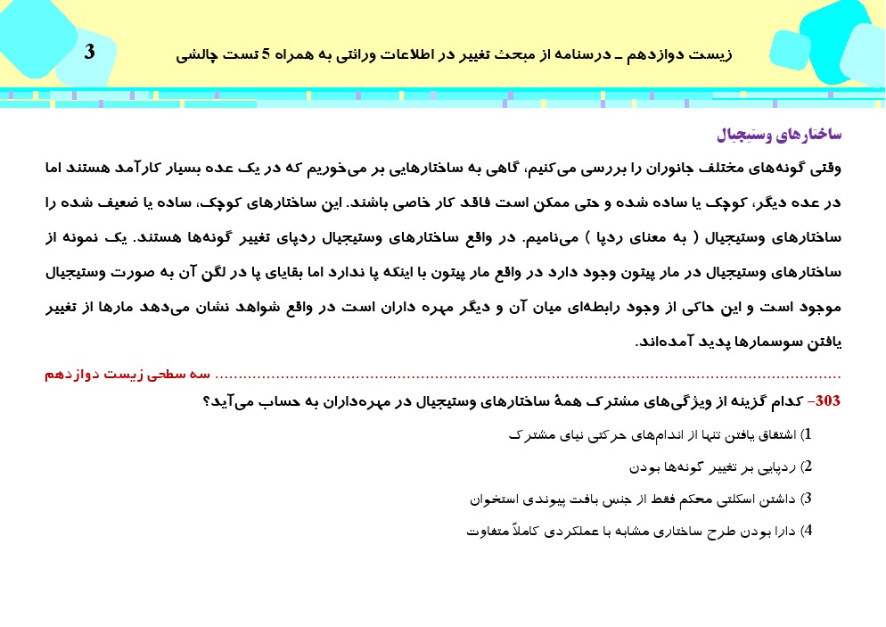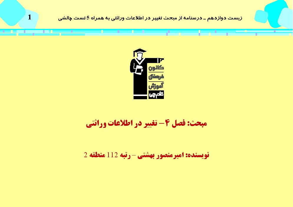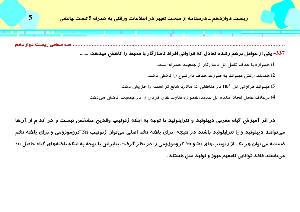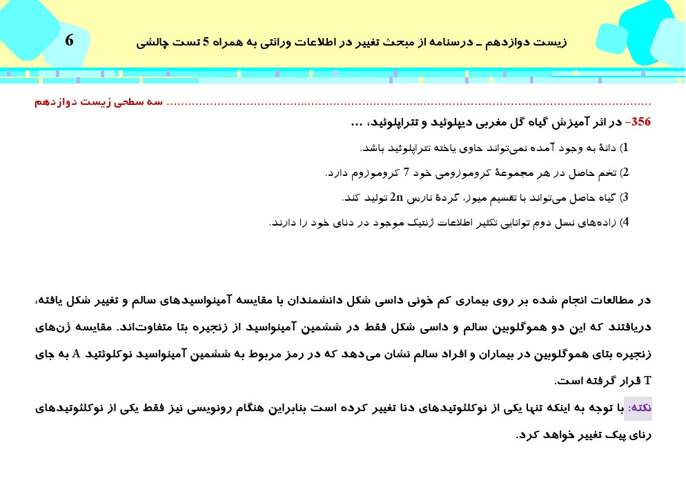این مطلب شامل درسنامه با 5 تست چالشی از کتاب سه سطحی زیست شناسی دوازدهم، مبحث تغییر در اطلاعات وراثتی میباشد.