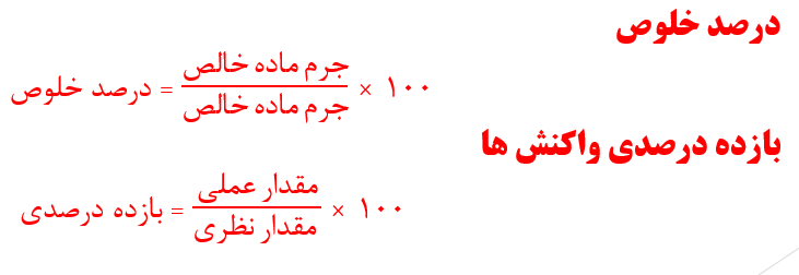 به مقدار فرآورده مورد انتظار در هر واکنش، مقدار نظری و به مقدار فرآورده ای که در عمل تولید می شود، مقدار عملی گفته می شود.