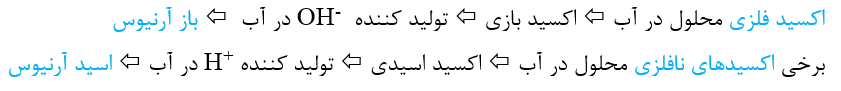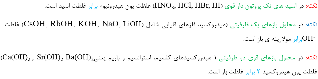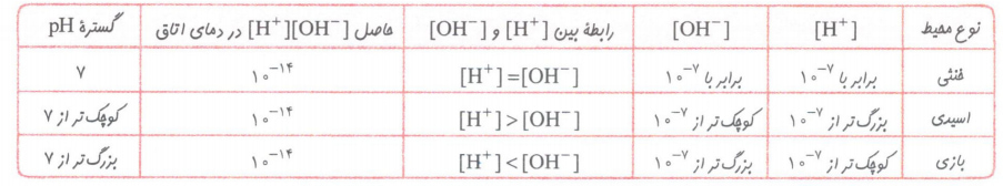 هر چه غلظت یون هیدرونیوم در محلولی بیشتر باشد، آن محلول اسیدی تر و هر چه غلظت یون هیدرکسید در محلولی بیشتر باشد، آن محلول بازی تر است.