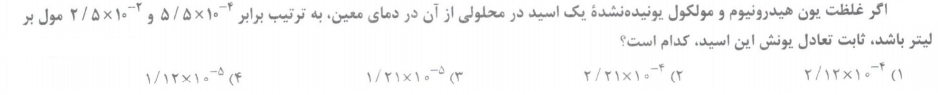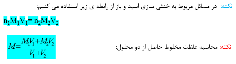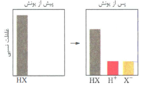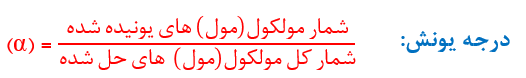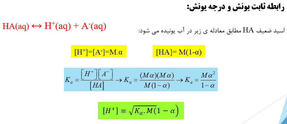 نکته: در اسیدهای ضعیف تک پروتون دار، غلظت یون هیدرونیوم برابر حاصل ضرب مولاریته ی اسید در درجه ی یونش است.