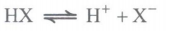 با حل شدن در آب به طور جزئی یونش می یابند؛ یعنی تعداد کمی از مولکولهای اسیدبه یون تبدیل می شوند و در محلول، علاوه بر یون های آبپوشیده، مولکول های اسید نیز وجود دارند. معادله یونش اسیدهای ضعیف در آب را به صورت دوطرفه (برگشت پذیر) نشان می دهیم: