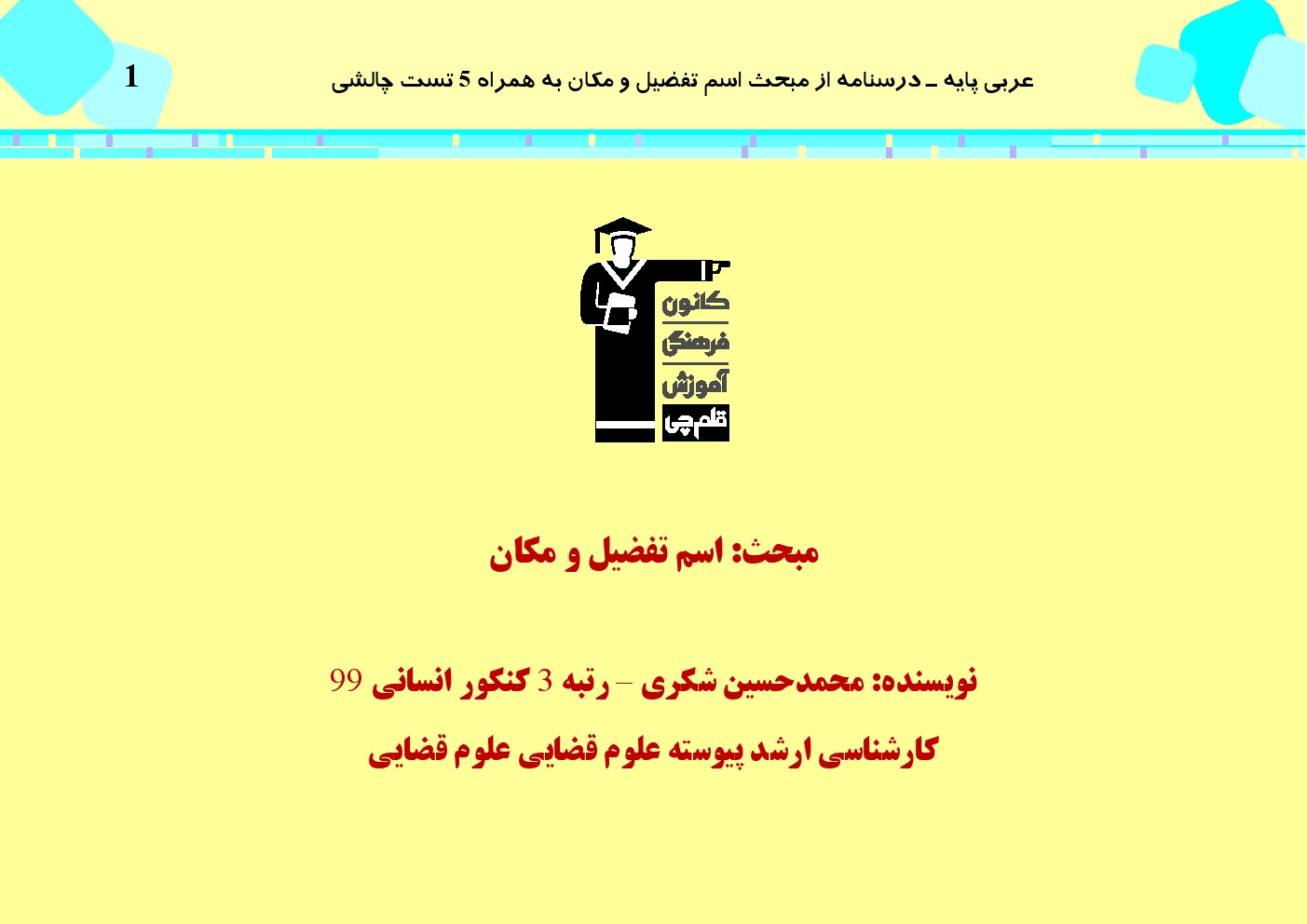 این مطلب شامل درسنامه با 5 تست چالشی از کتاب سه سطحی عربی پایه، مبحث اسم تفضیل و مکان میباشد.