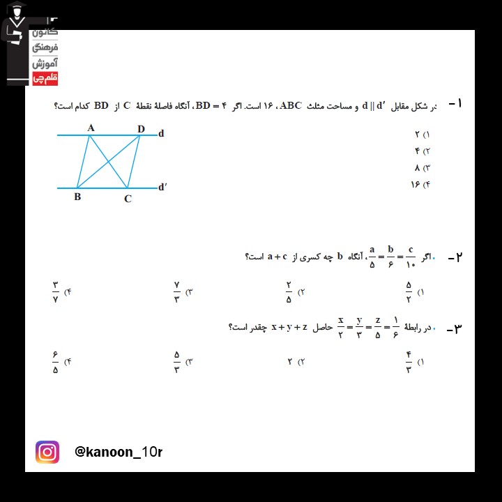 برای حل سوالات بیشتر، حتما تستهای کتاب آبی و سه سطحی هندسه دهم را تمرین کنید.
