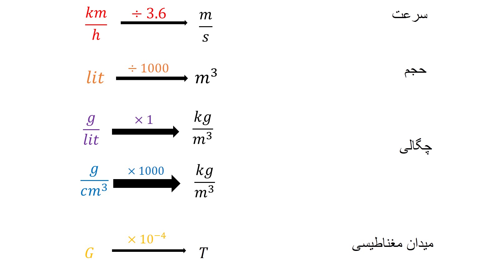 در زیر برخی از مهمترین تبدیل واحدها را باهم بررسی میکنیم :