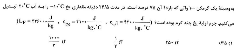 توجه : حواستان به واحد خواستهشده جواب باشد ، بارها و بارها شاهد این بوده ایم که جواب با واحدهای مختلف در گزینه ها وجود دارد و در صورت عدم توجه علارغم حل سؤال گزینهی اشتباه را میزنید .