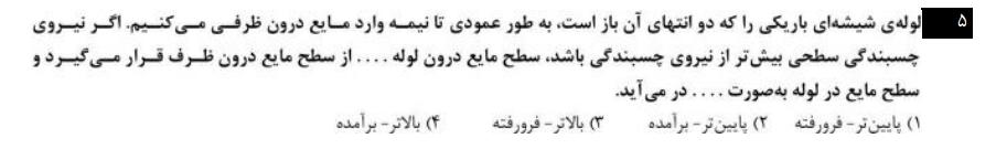 اگر یک لوله مویین (بسیار نازک) را در آب قرار دهیم آب در لوله بالا می رود