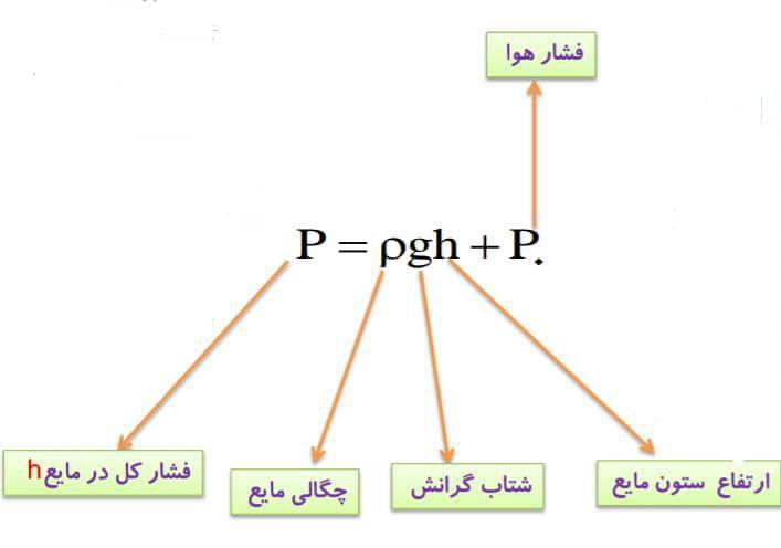 فشار در عمق h درون یک شاره ساکن از جمع فشار هوا با فشار ارتفاع ستون مایع به دست می آید.