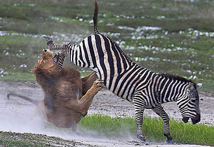ما گورخرها بايد خوب از خودمان مراقبت کنيم. چون بعضي از انسان ها ما را به خاطر پوست زيبايمان شکار مي کنند و از پوستمان لباس ها و کيف هاي زيبا درست مي کنند. تازه ها بعضي از حيوانات درنده مثل شيرها ما را به خاطر گوشتمان شکار مي کنند.حساسيت اندامهاي حسي ما را قادر ميسازد تا متوجه حضور حيوانات درنده شده و به سرعت فرار کنيم. دومين ساختمان دفاعي ما اين است که زمان خواب گله يکي و يا دو تا از گورخرها بيدار ميمانند تا مراقب خطرات احتمالي باشند.سم هاي ما خيلي قوي و نيرومندند و ما مي توانيم به دشمنانمان لگدهاي محکمي بزنيم.