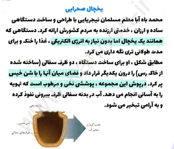 یخچال صحرایی - خلاصه نکات شیمی - هادی مهدیزاده-قابل مشاهده در لینک بالا: