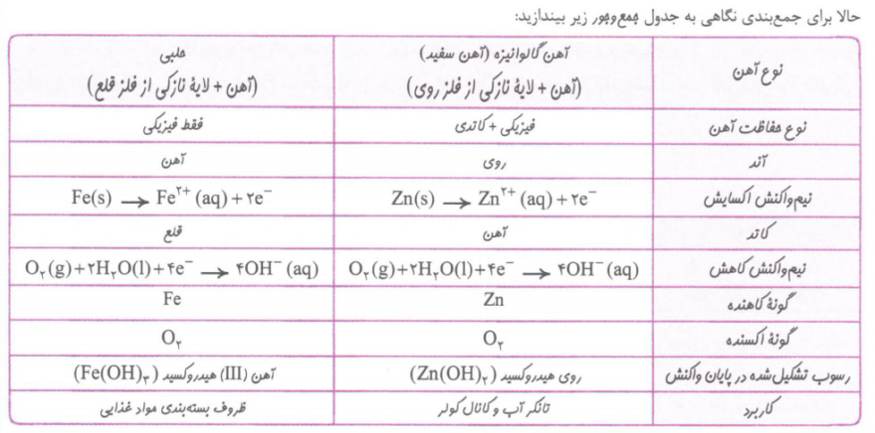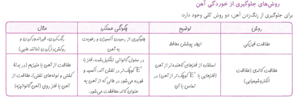 نکته: آهن متصل، در نقش کاتد حفاظت شده و خورده نمی شود.