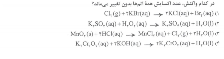 نکته: اگر در واکنشی عنصر به حالت آزاد در واکنش دهنده ها یا فرآورده ها وجود داشته باشد، حتما از نوع اکسایش – کاهش است و چون عدد اکسایش عنصر به حالت آزاد صفر است و هنگامی که در ترکیب است تغییر کرده و صفر نیست.
