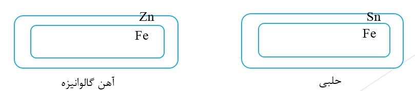 3) پوشاندن سطح آهن با فلز دیگری مانند قلع (Sn) یا روی (Zn) که در برابر خوردگی مقاوم است. (روکش کردن)