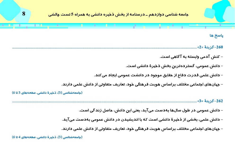 این مطلب شامل درسنامه با 5 تست چالشی از کتاب سه سطحی جامعه شناسی دوازدهم، مبحث ذخیره دانشی میباشد.