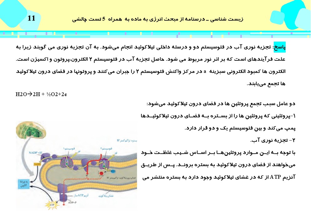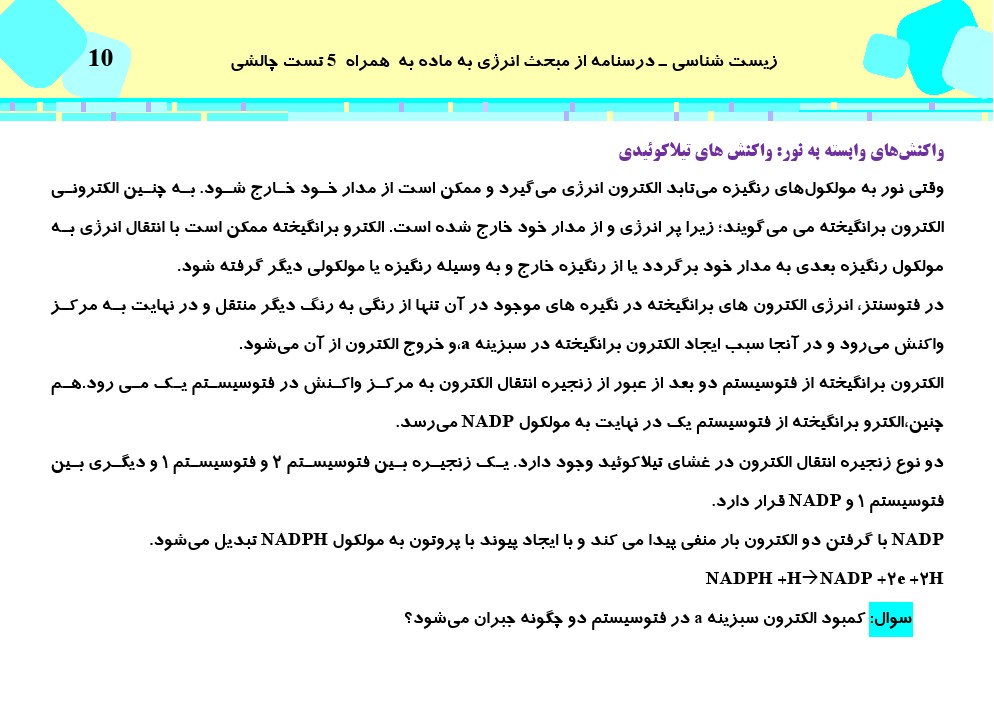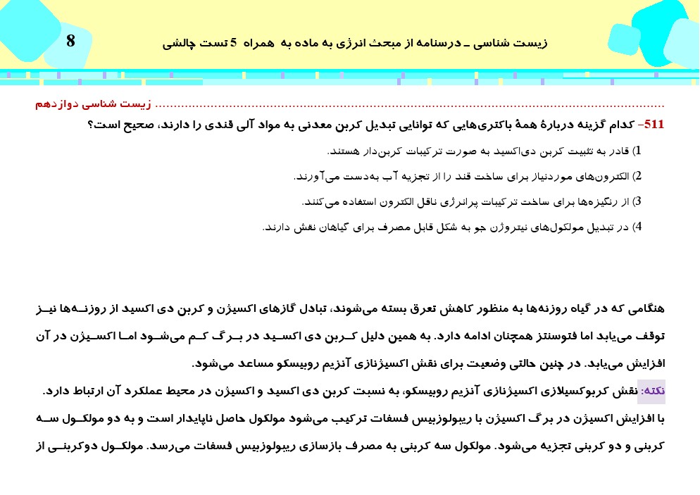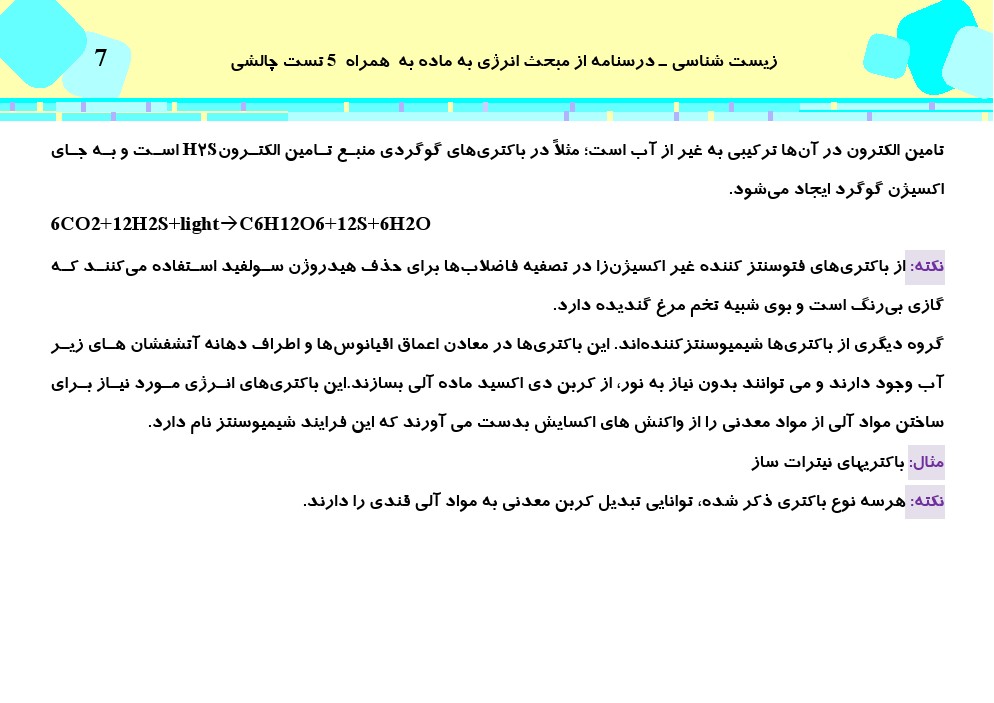 این مطلب شامل درسنامه با 5 تست چالشی از کتاب سه سطحی زیست دوازدهم، فصل ششم (از انرژی به ماده) می باشد.