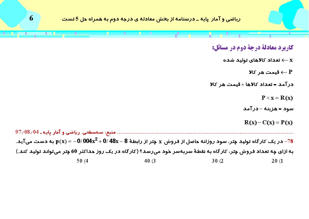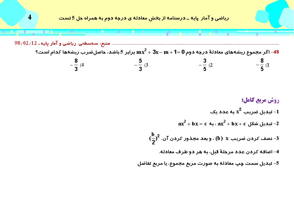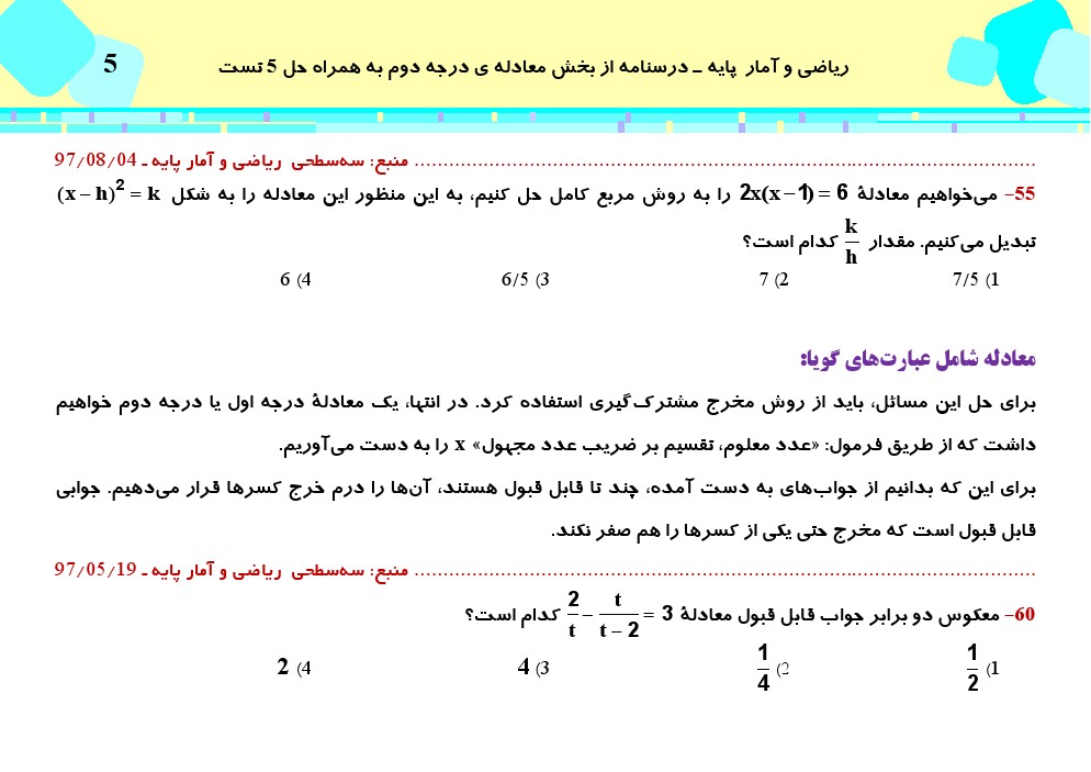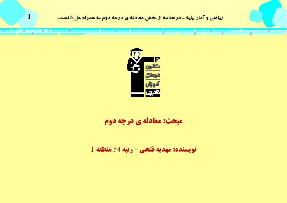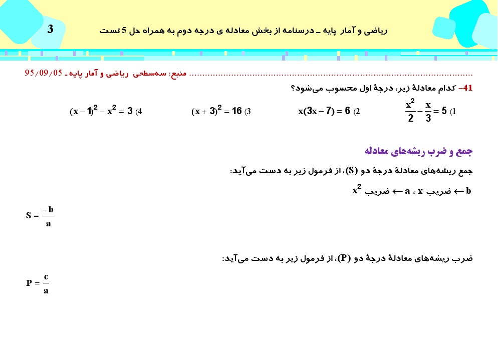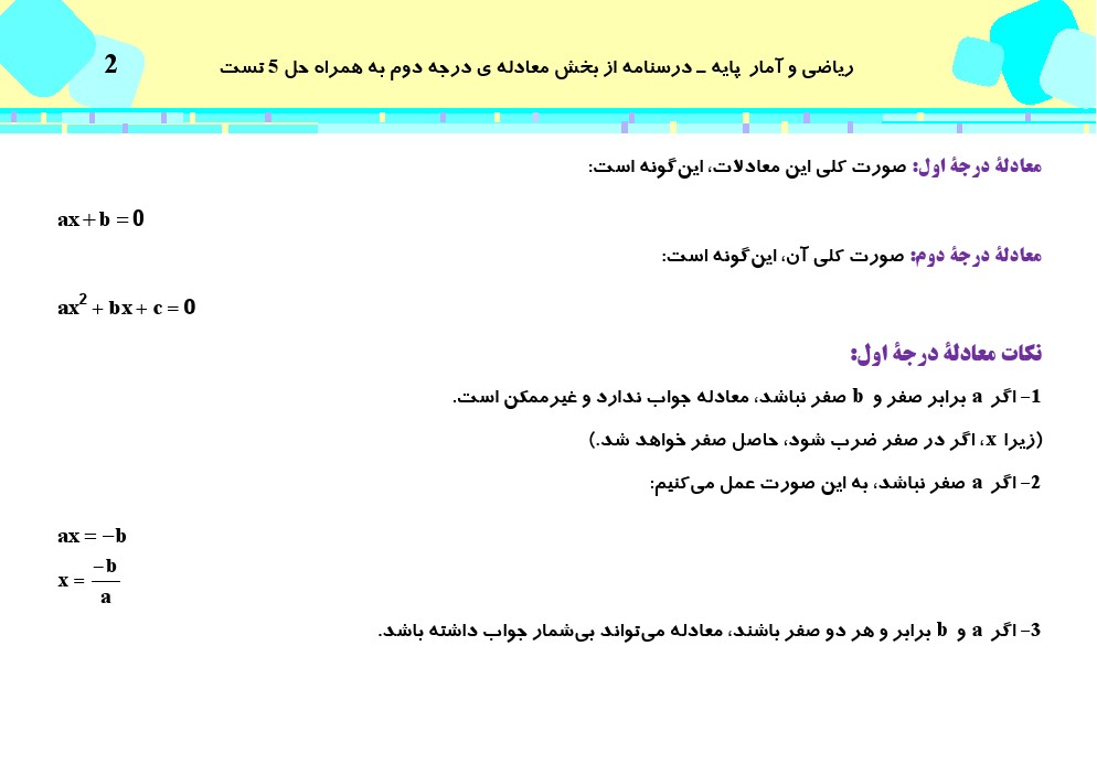 این مطلب شامل درسنامه با 5 تست چالشی از کتاب سه سطحی ریاضی و آمار پایه ، مبحث معادله ی درجه دوم میباشد.در قسمت ضمیمه فایل درسنامه به همراه پاسخ تشریحی سوالات قرار داده شده است.این مطلب توسط مهدیه فتحی تهیه شده است.* گروه برترهای کانون *