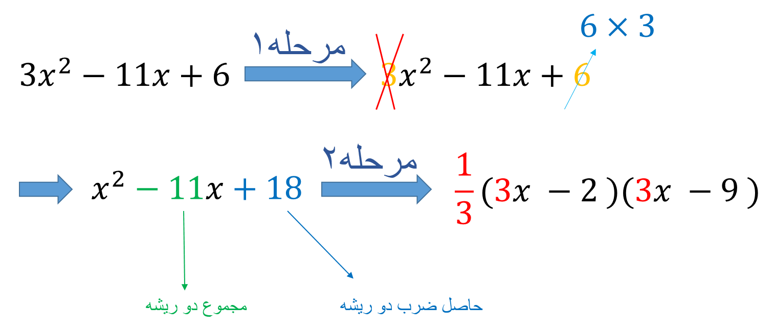 مرحله اول :حذف ضریب x^2 و ضرب کردن این ضریب به جمله عددی