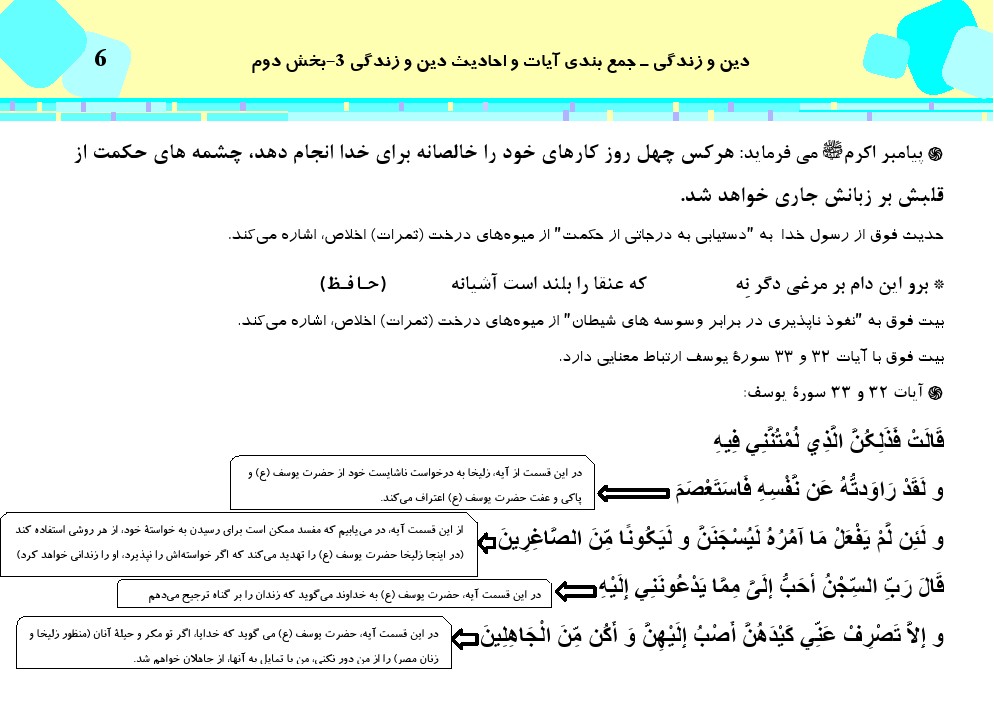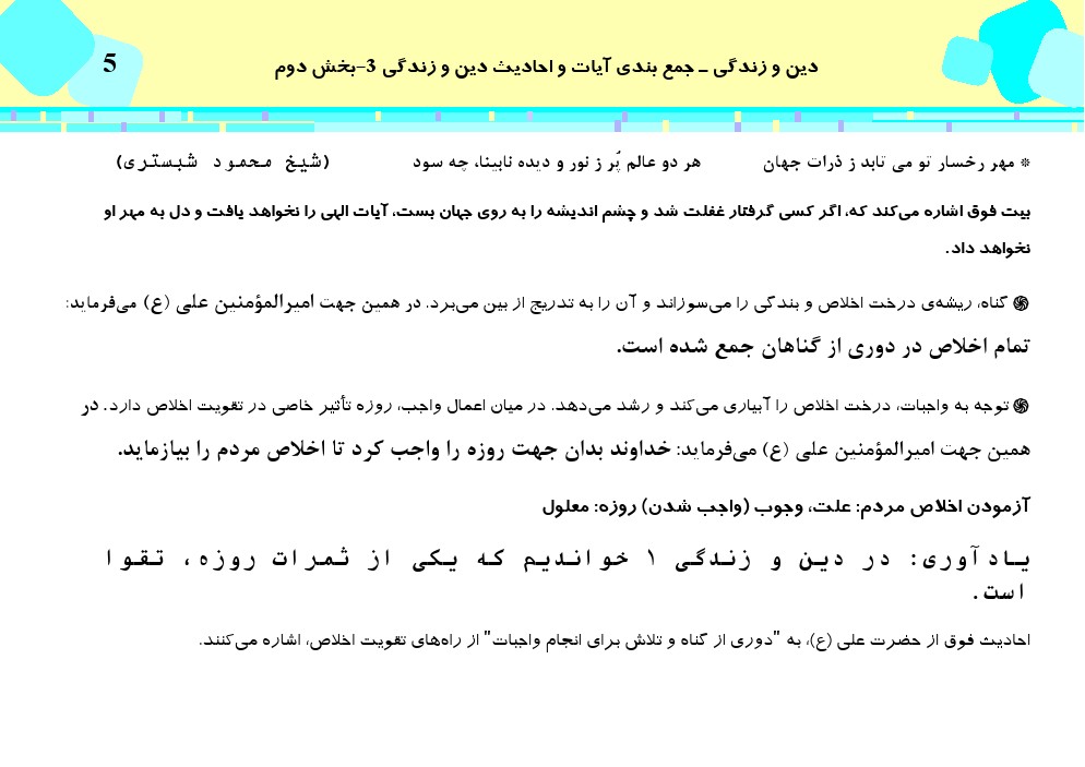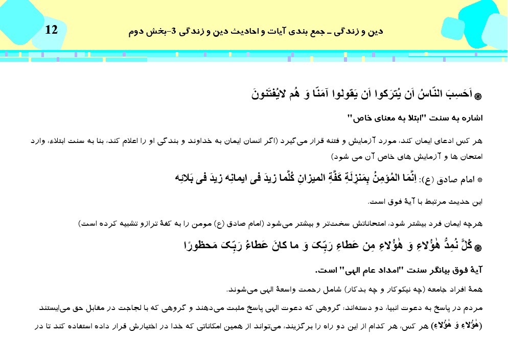 دینی دوازدهم : جمع بندی آیات و احادیث(بخش اول)
