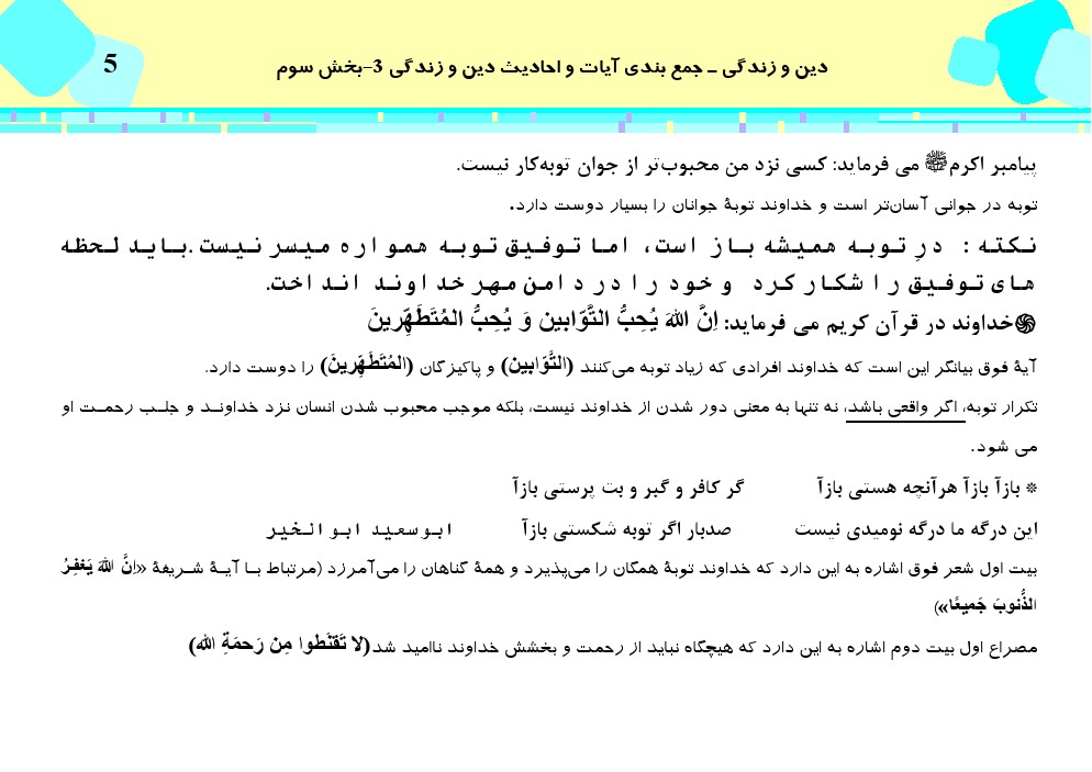 دینی دوازدهم : جمع بندی آیات و احادیث(بخش دوم)