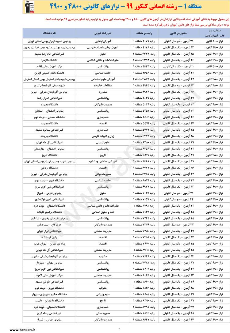 برای مشاهده سایر قبولی های منطقه 1 و سایر مناطق رشته انسانی فایل های ضمیمه را دانلود کنید.