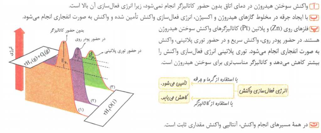 نکته: هرچه انرژی فعالسازی واکنش های شیمیایی کم تر باشد، سرعت انجام واکنش های شیمیایی بیشتر است.