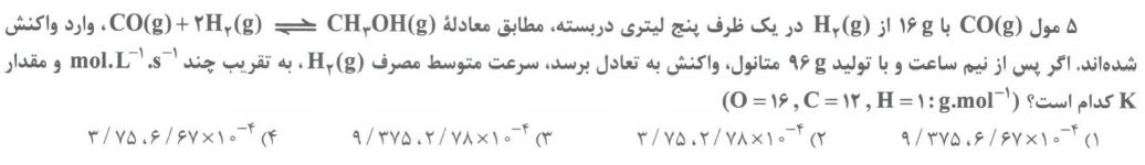 2- بزرگتر از Kباشد؛ تعادل در جهت مصرف فرآورده ها و تولید واکنش دهنده ها (جهت برگشت) پیش می رود تا به تعادل برسد.