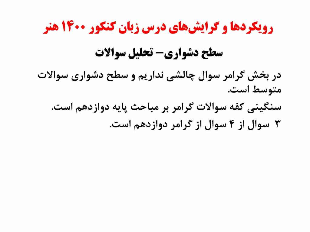 رویکردها و گرایشهای درس زبان کنکور 1400 هنرسپیده عرب- مدیر گروه منحصراً زبان- مسئول درس زبان انگلیسی دوازدهم- رتبه 224 کنکور سراسری 90- رتبه 24 کنکور ارشد 95- کارشناسی زبان و ادبیات انگلیسی- ارشد زبانشناسی دانشگاه تهران