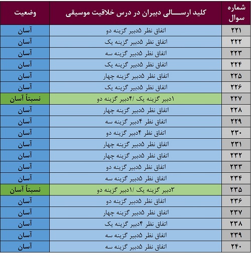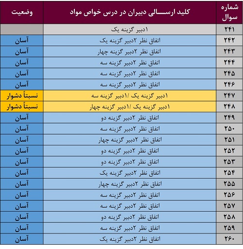 تنها در دو سوال، یک دبیر نظری متفاوت با سایر دبیران دارد (سوال 227 و 235).